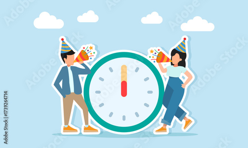Micro characters boxer training hitting huge pear punching bag, man pushing big stopwatch etc, vector illustration. Boxing sport equipment composition for web banner, website page.