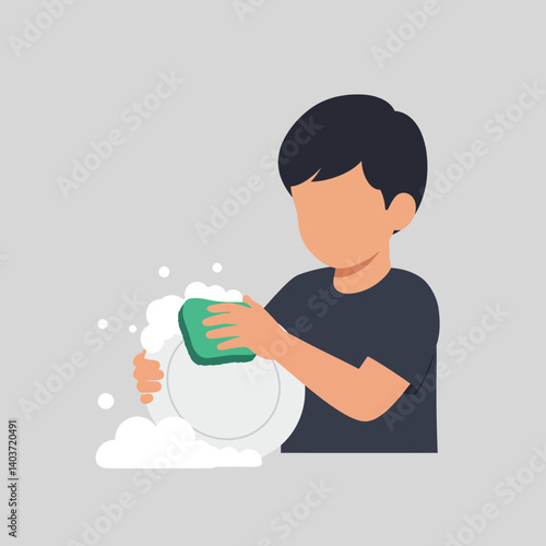 Boy schoolchild studying robotics subject vector icon isolated on white background.