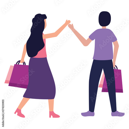 Boyfriend shooting girlfriend using mobile camera vector icon isolated on white background