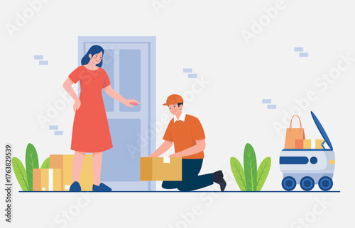 Break up, landing page design, website banner template set, flat vector illustration. Relationship crisis, divorce, family conflict, unhappy love. Heartbroken woman, boyfriend or husband leaving home.