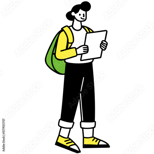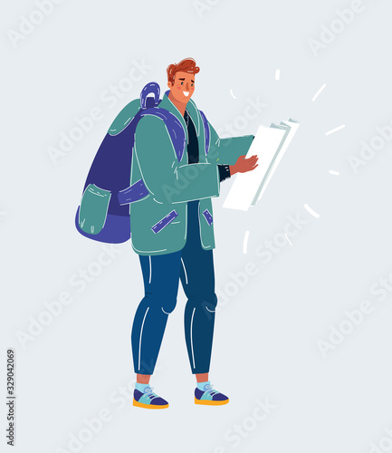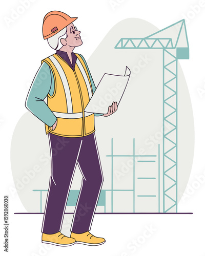 Builder reading blueprint vector icon isolated on white background.