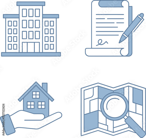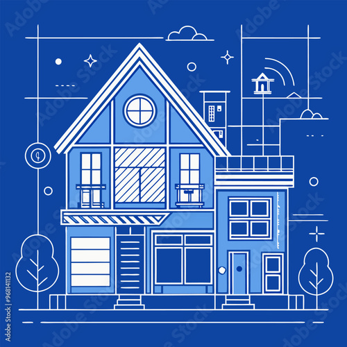 Blue cityscape, building construction concept. Vector illustration in paper art style.