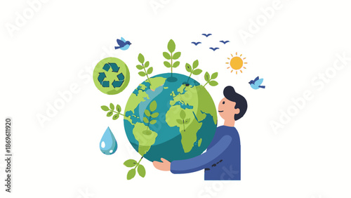 Business commitment to limit global warming and climate change. Environment concept vector illustration. Two businessman shake hands and make a deal to invest in green business and sustanable economy.
