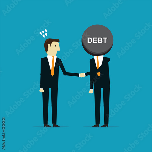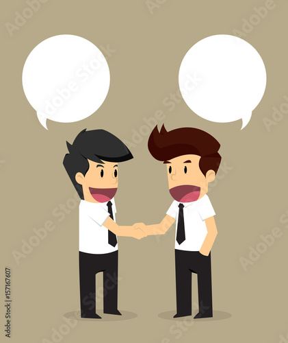 Business concept vector illustration in flat cartoon style. Business people shaking hands. Businessmen making a deal. Money investment concept. Dollar symbol.