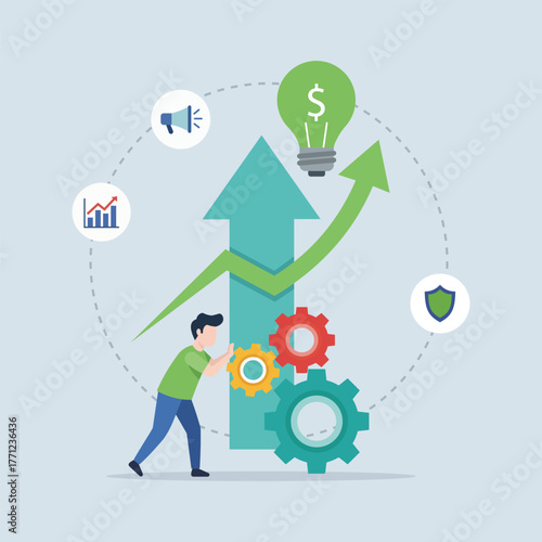 Businessman walking up staircase to trophy cup, vector illustration in paper art style. Financial success, growth, leadership, business journey, challenge, way to success concept.