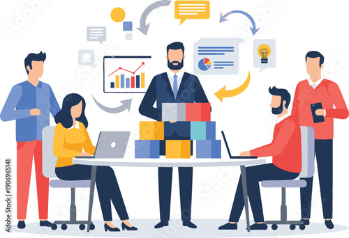 Business consultant, audit professionals analysing data, flat vector illustration. Financial statement or annual report, financial audit and advisory services. Finance and accounting.