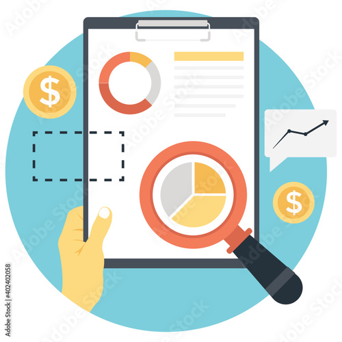 Business data analysis in chart and graph vector icon. Digital research, finance web report, seo information