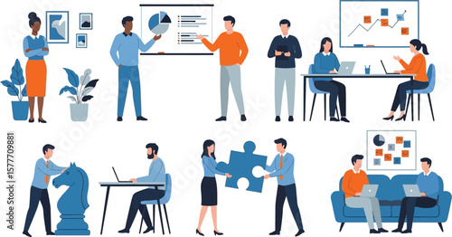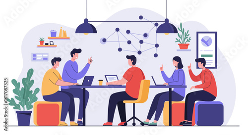 Business deal concept. Two businessmen conclude agreement and shake hands. Office environment. Vector web site design template. Landing page website concept illustration.