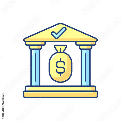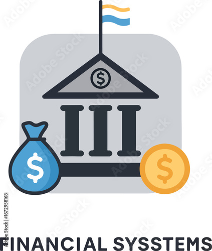 Business icon. Vector 3d bag, briefcase, money wallet and bank building isolated illustration. Financial portfolio suitcase, dollar investment or credit symbol. Banking institution services concept