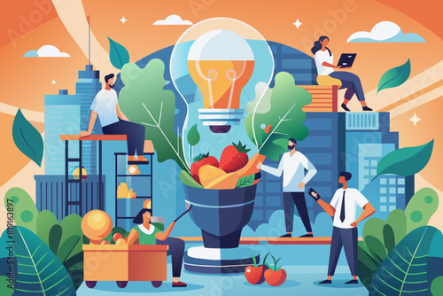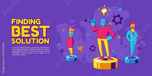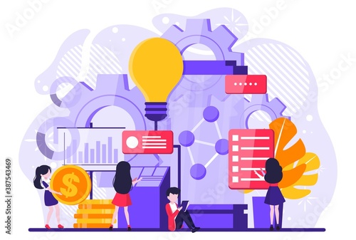 Vector illustration of big light bulb and office people discussing, proposing new business ideas. Innovation, creating new ideas, brainstorming concepts for web banner, website page etc.