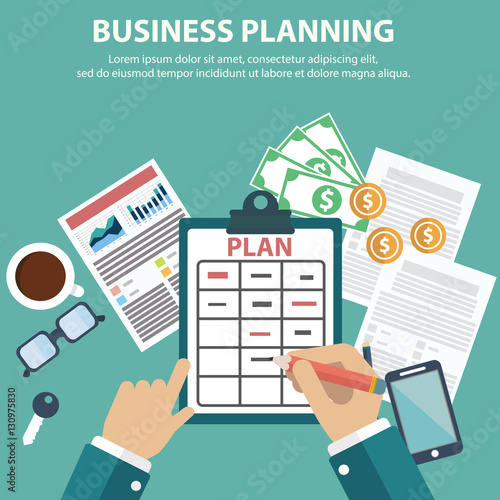Business insurance concept vector illustration. Sign contract agreement to protect business from risks. Poster in flat style design.