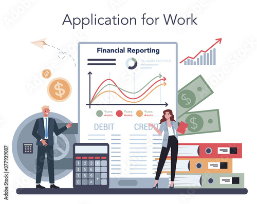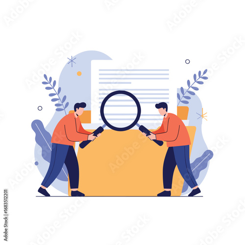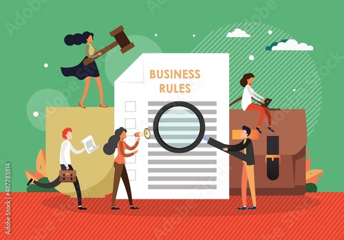 Business people reading company rules, flat vector illustration. Business laws and regulations, ethical practice, compliance policy and procedures.