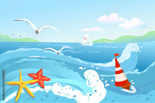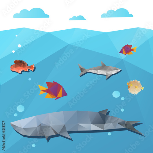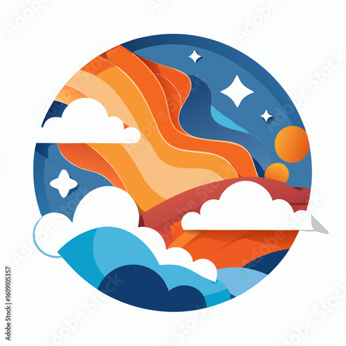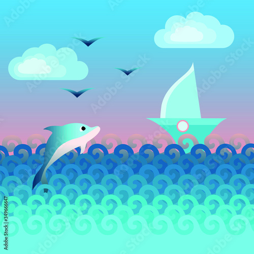 Business leader concept vector poster in paper art origami style. Businessman looking through telescope standing in boat on the top of ocean wave. Business leadership concept.