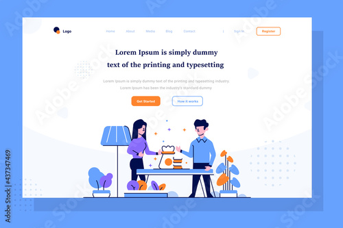 Business meeting and presentation. Project management team. Business education seminar with 3d projector. Vector web site design template. Landing page website concept illustration.