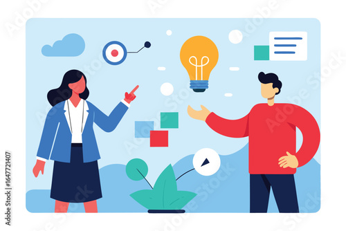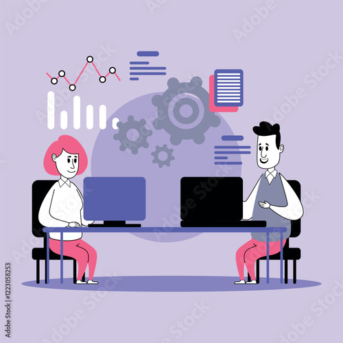 International business partners online meeting, flat vector illustration. Video call chat and video conferencing technologies, distance business communication.