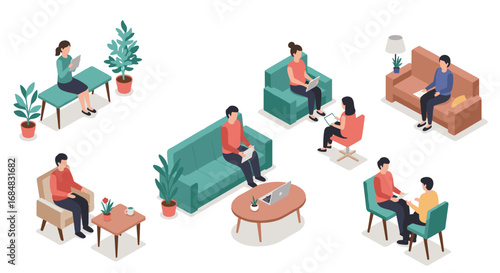 Business people climbing up stairs, flat vector illustration. Self growth and personal development, career ladder, reach target, teamwork.