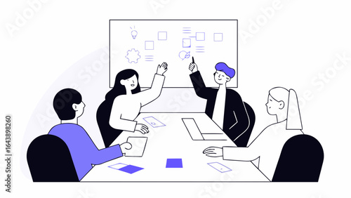 Business people, clipboard with checklist, clock. Woman checking to do list, man showing ok hand sign, flat vector illustration. Task management, planning, time management.