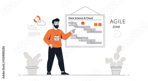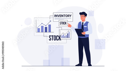Vector illustration of happy man holding cup of tea in one hand and folders with papers in the other. Business people flat style design element, icon isolated on white background.