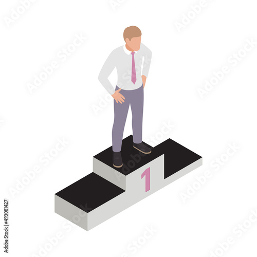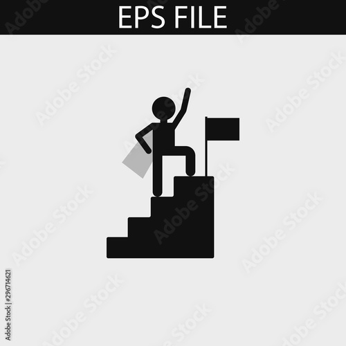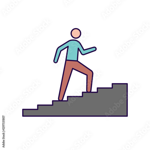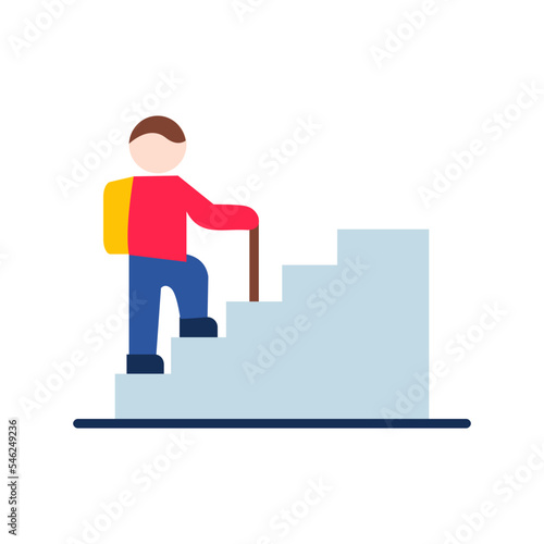 Vector illustration of happy businessman going upstairs with hand raised. Business people flat style design element, icon isolated on white background.