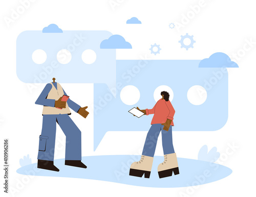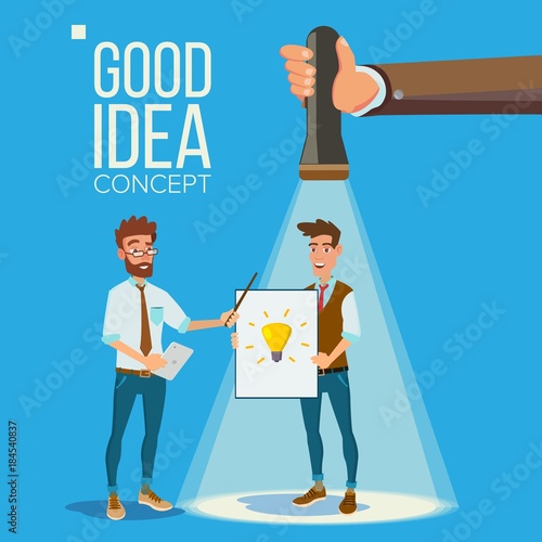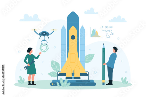 Business people looking at flying rocket, flat vector illustration. Space rocket launch, new business project startup concept.