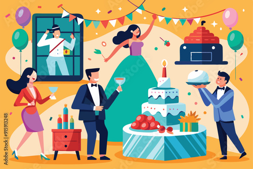 Business people shaking hands, flat vector illustration. Businessman and businesswoman making deal, successful business sales. Handshake.