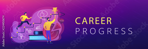Business people team silhouettes climbing up stairs holding hands to trophy cup on the top, vector illustration. Teamwork success, leadership, business goal, career growth. Business and finance icons.