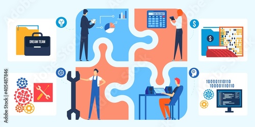 Business people with cash money, credit card, money bag, flat vector isolated illustration. Financial success, career growth.