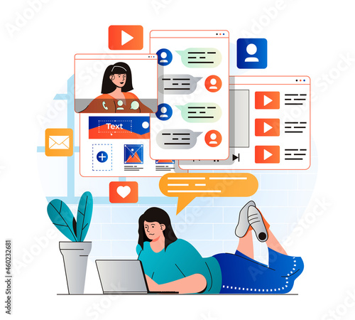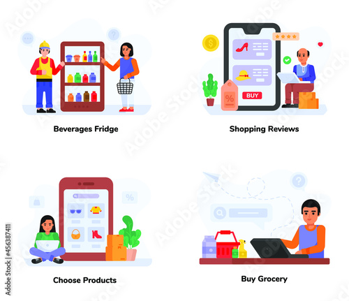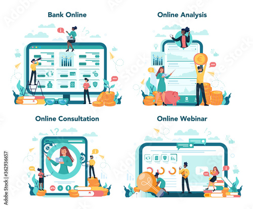 Business people working on laptop computer, using mobile phone sitting at table, in bean bag chair, flat vector isolated illustration. Office work, freelance, home office.