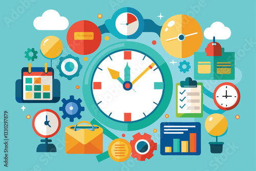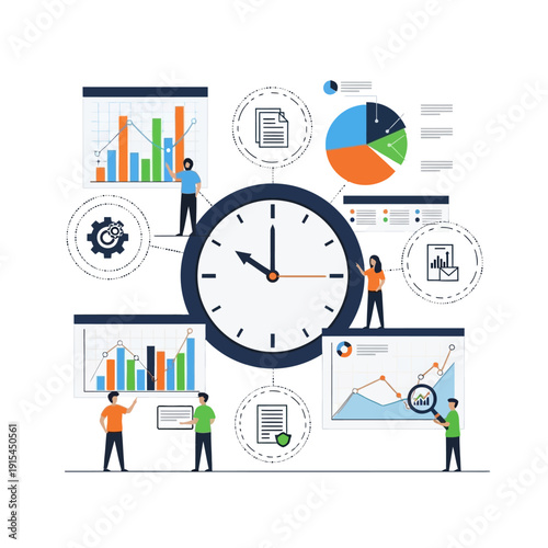 Business plan, time management and schedule vector. Planning project tasks, managing work and finance marketing 3d illustration. Efficiency, success and profit concept