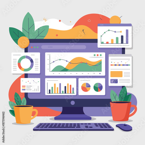Business presentation with white board. Woman present her ideas in the office. Business seminar concept illustration. Vector web site design template.
