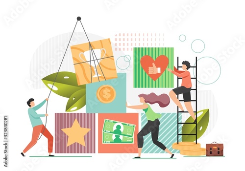 Business people team building pyramid, vector flat style design illustration. Successful business dream, financial pyramid concept for web banner, website page etc.
