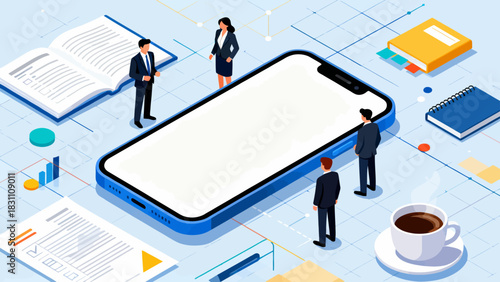 Business woman balancing work, career and family, flat vector isometric illustration. Work and life balance concept.