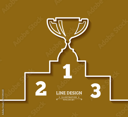 Business word ladder with trophy award cup on top. Vector realistic illustration. Business success concept for web, poster, banner.