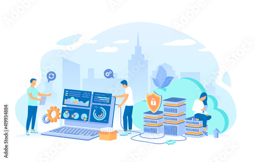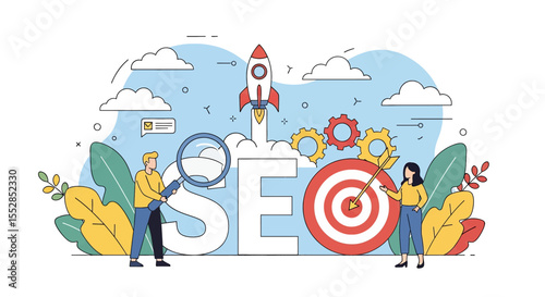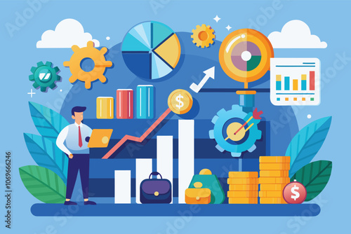 Business man attracting potential customers with magnet, flat vector illustration. Targeting, digital marketing campaign, customer retention, inbound marketing.
