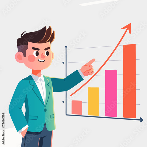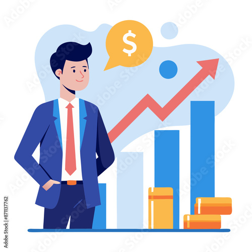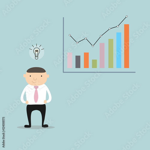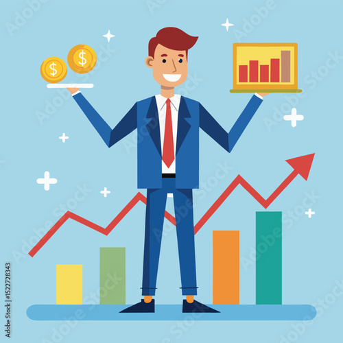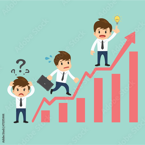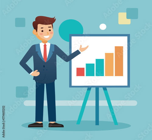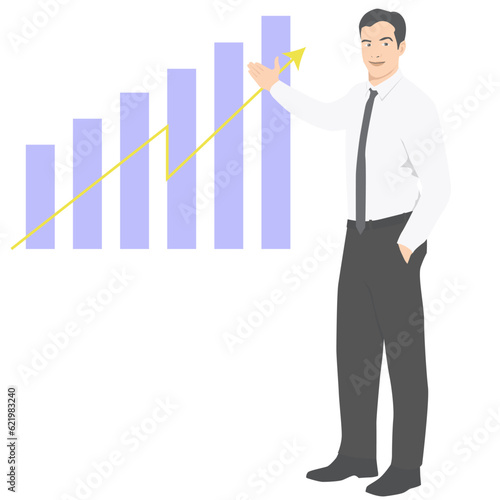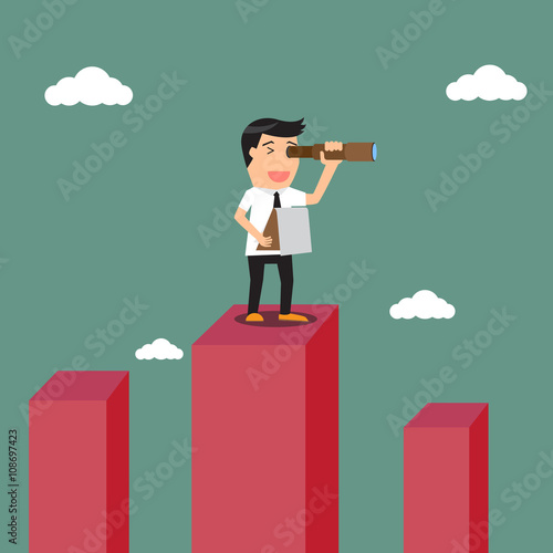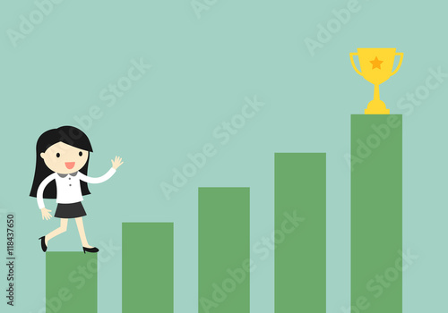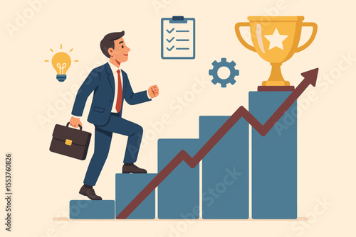 Businessman climbing ladder to success. Goal achievement. Motivation and goal concept to be successful in business and life. Vector illustration in flat design.