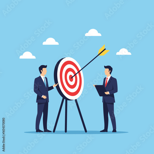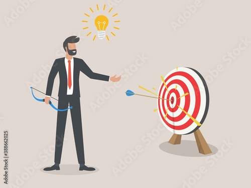 Businessman climbing ladder to success. Goal achievement. Motivation and goal concept to be successful in business and life. Vector illustration in flat design.