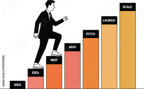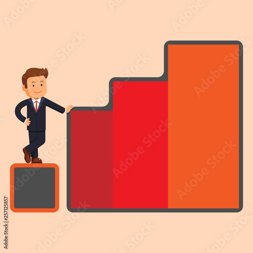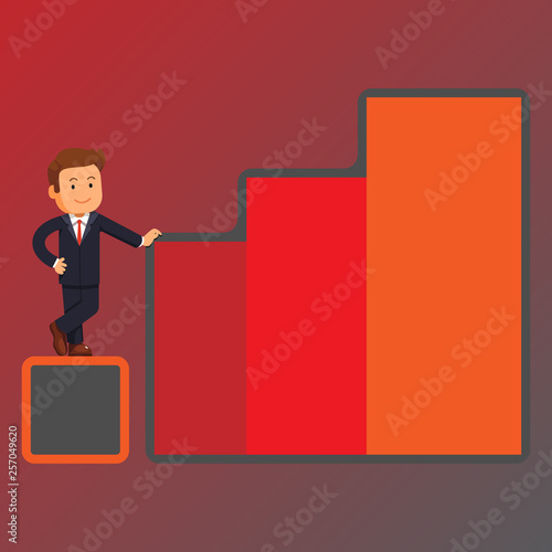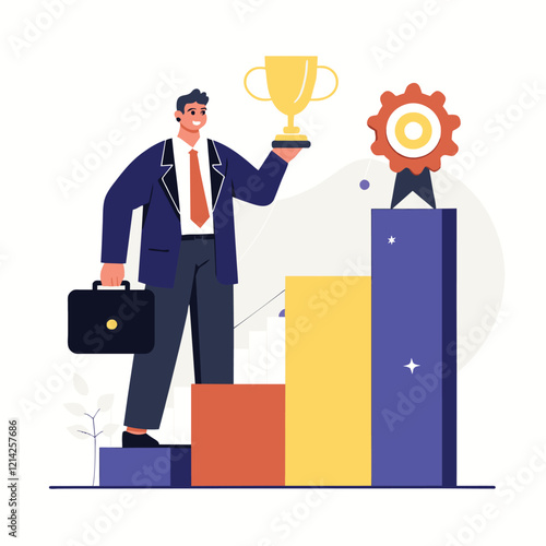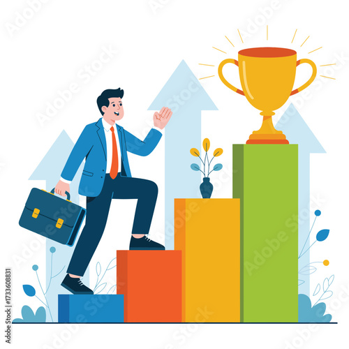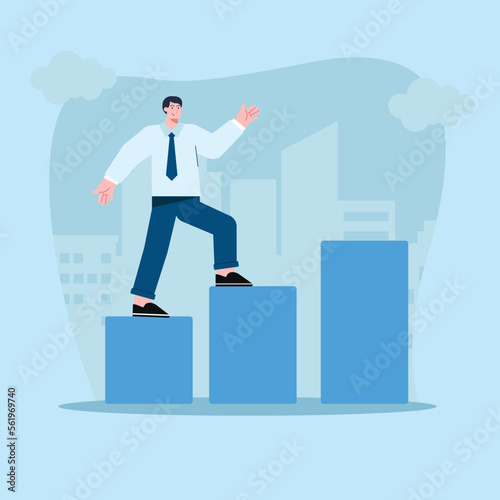 Businessman climbing ladder to success. Goal achievement. Motivation and goal concept to be successful in business and life. Vector illustration in flat design.