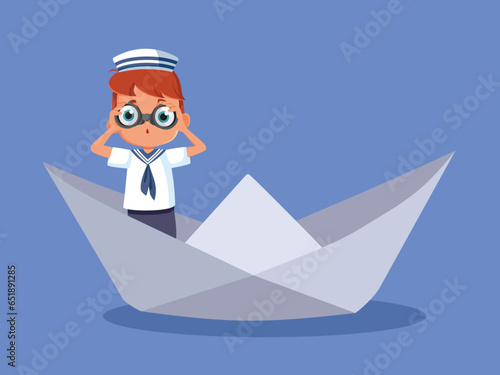 Businessman escape from sinking paper ship vector illustration. Business and bailout from bankruptcy concept
