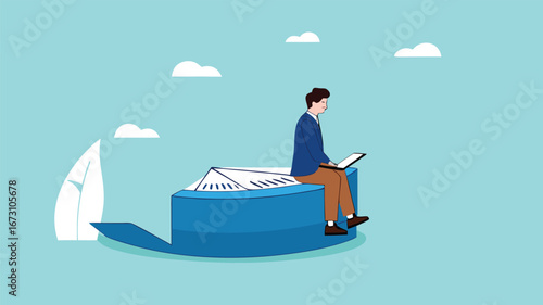 High rate taxes burden vector. Businessman in sinking paper boat in water due to heavy taxes kettlebell illustration. Taxpayer problem, bankruptcy and financial crisis concept