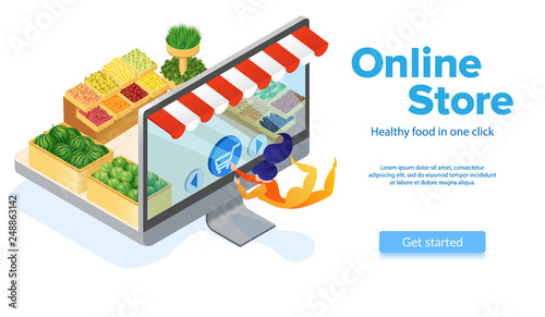 Businessman buying or selling shares, investing in stock market from mobile phone, flat vector isometric illustration. Mobile stock trading concept.