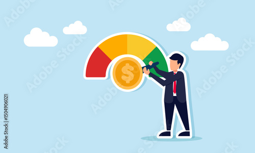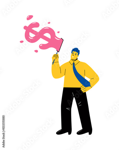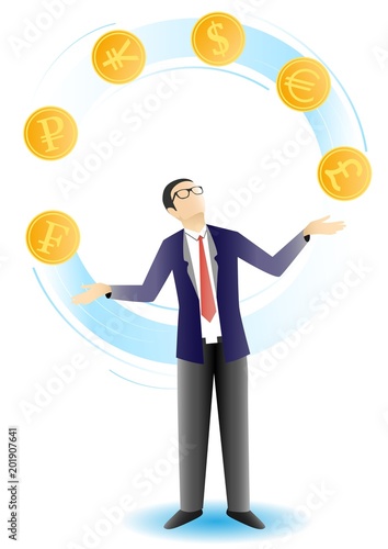 Vector illustration of businessman juggling gold coins with cryptocurrency symbols. Business and finance concept design element.