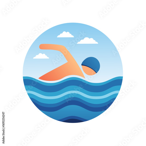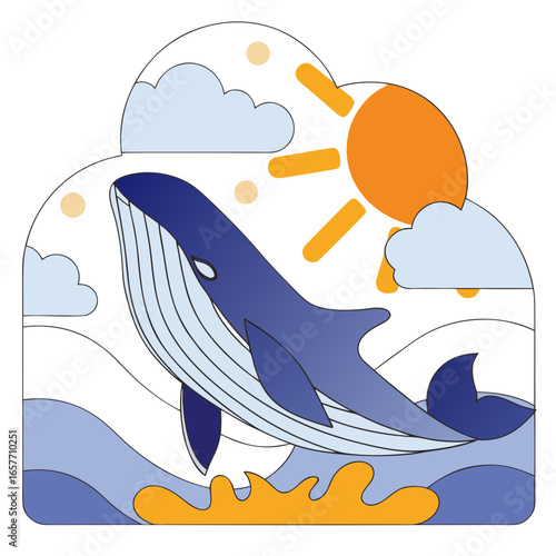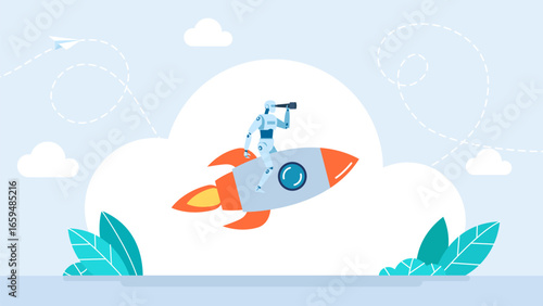 Young businessman with briefcase staying afloat and surfing the waves of change. Vector illustration in paper art style. Challenge business concept.