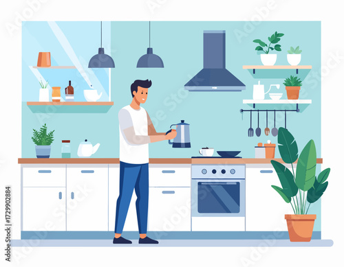 Bearded man butterfly collector or catcher with butterfly net. Vector illustration in flat style. Butterfly collecting hobby concept design element.