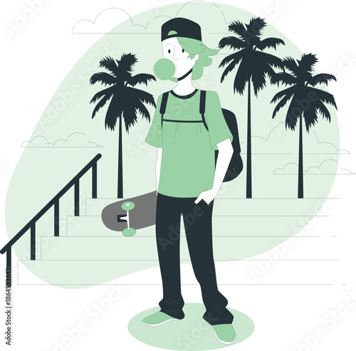 Vector illustration of young man standing next to bird cage with cockatoo. Buying a parrot flat style design element.