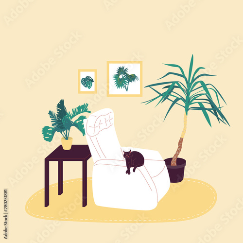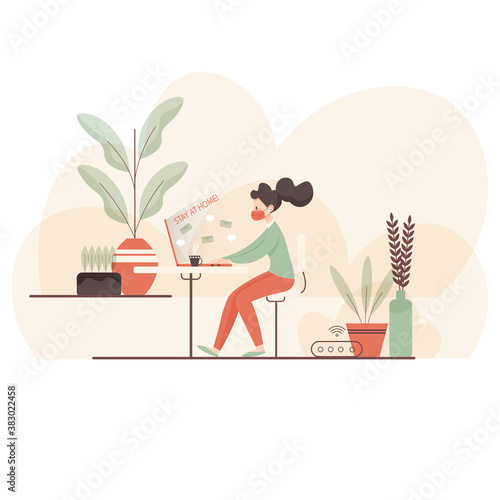 Vector illustration of woman buying tropical exotic fish. Pet shop interior. Flat style design elements.