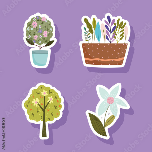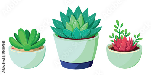 Realistic cactus and succulent plants in white pots, vector illustration isolated on white background. Beautiful cacti and succulent potted houseplants.