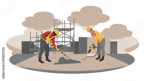 Cafe in the mountains. Happy couple drinking mulled wine, flat vector illustration. Young man in Santa hat and woman celebrating New Year and Christmas holidays outside the city. Winter vacation.