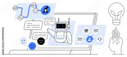Call center concept vector illustration in the shape of speech bubble. Modern thin line art flat style design element for printed materials.