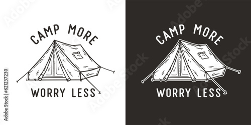 Camping club logo. Outdoor recreation vector emblem. Vintage badge with tent, bonfire at night landscape. Retro badge isolated on white background
