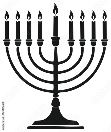 Candlestick with one, two, three and seven burning candles set. Vector realistic illustration isolated on transparent background.